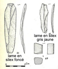 ° deux lames de silex : l’une gris jaune et une plus foncée.