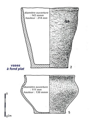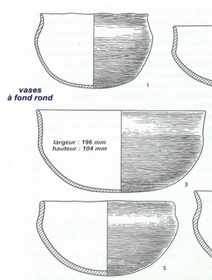 Outre de nombreux tessons, des poteries ont également été retrouvées. Dans un ensemble assez hétérogène on a pu établir la classification suivante: