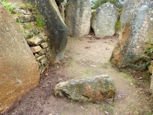 La plus grande partie des objets (vases, haches, lames, pendeloques…) on été retrouvées dans la partie orientale de la chambre ou dans le « coffre » situé entre la pierre de seuil et "la porte" d’entrée dans la chambre funéraire.